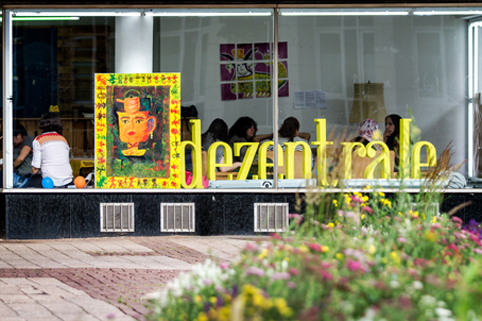Seit 2012 habe ich zudem das Projekt dezentrale – für forschende stadterprobung geleitet. Die dezentrale bietet Zeit und Raum, um Stadt zu gestalten. In einem gemeinsamen Prozess mit den Bewohner*innen der Stadt werden neue Strategien und Möglichkeiten einer Veränderung des städtischen Raums mit künstlerischen und kulturellen Mitteln diskutiert und vor allem ausprobiert. So wird die dezentrale zu einem Ort der mannigfachen Nutzung, die von den Bewohner*innen Mülheims und darüber hinaus gestaltet wird. In unterschiedlichen Projekten, ob temporär oder dauerhaft, haben sich sehr verschiedene Gruppen und Einzelpersonen in der dezentrale engagiert und für eine Belebung einer sich im Niedergang befindenden Innenstadt gesorgt. Der Schwerpunkt meiner Tätigkeit als Projektleiterin ist dabei sowohl kuratorisch angelegt als auch besonders auf die Wiederbelebung des Eigenengagements der Mitbürger*innen durch die Nutzung der dezentrale ausgerichtet.